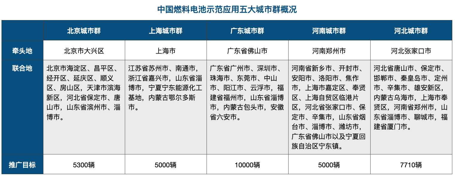 2021年8月及年底,北京、上海、广东和河南、河北分两批通过示范城市群审批,标志着中国燃料电池汽车的进入新的发展阶段——示范期。