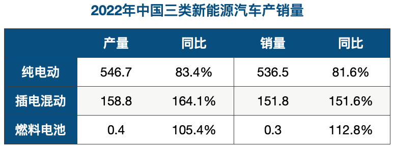 2022年,中国新能源汽车销量688.7万辆,其中纯电动536.5万辆,插电混动151.8万辆,而燃料电池汽车销量不足3400两,不及纯电动汽车的一个零头。