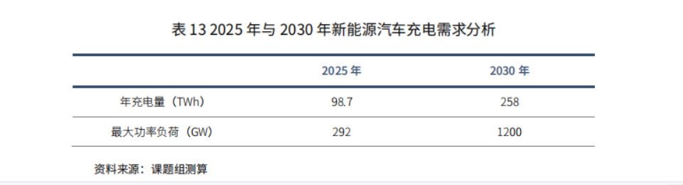 随着新能源车保有量的增加,其用电量增长肉眼可见,城市电网的用电负荷必然越来越大。年充电量会由2025年的98.7TWh,增加到2030年的258TWh。其中《研报》特意强调,新能源汽车补能需求对电网侧的冲击在大城市尤为明显。
