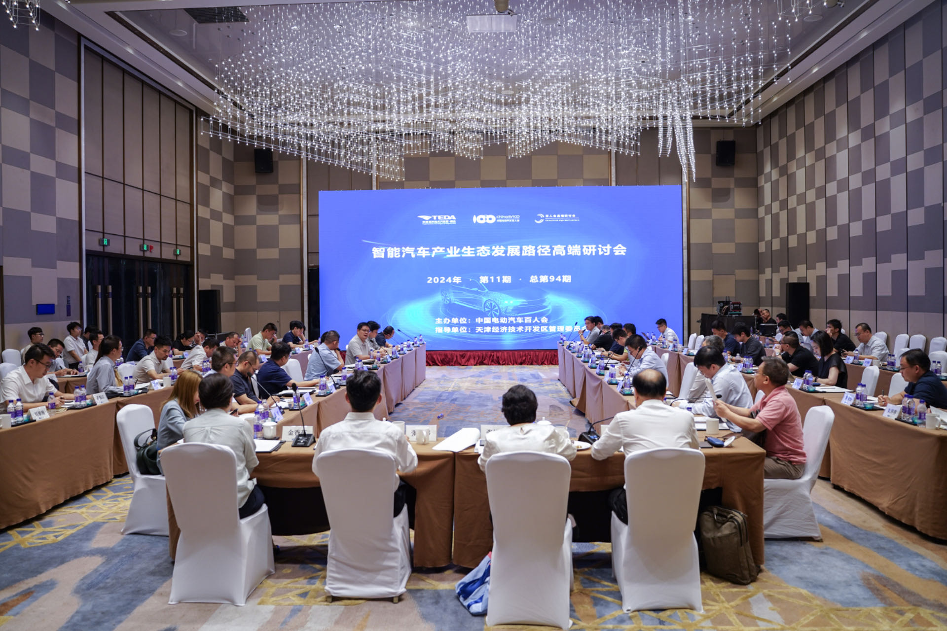 与会者围绕大模型赋能智能座舱发展、智能驾驶走向端到端的基础支撑及开发生态、汽车芯片和操作系统等基础软硬件生态构建方式、消费电子和ICT等跨界企业对汽车智能化升级的推动作用等议题进行了交流和研讨。中国电动汽车百人会副秘书长师建华主持会议,天津市滨海新区副区长张桂华出席会议并致辞,中国电动汽车百人会副理事长兼秘书长张永伟进行会议总结。此外,天津经开区管委会副主任金香花出席会议。