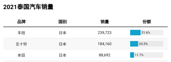 更重要的是燃油车时代,日系车占据了泰国九成左右的消费市场。日系车作为最早进入泰国布局生产线的车企,还掌握着汽车产业链、经销商渠道、上下游零件供应商等生产供应链等。?