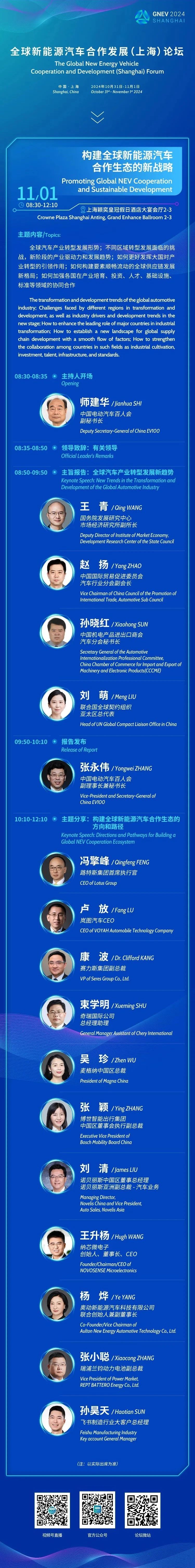 11月1日,全球新能源汽车合作发展(上海)论坛(GNEV2024?Shanghai)在上海开幕。