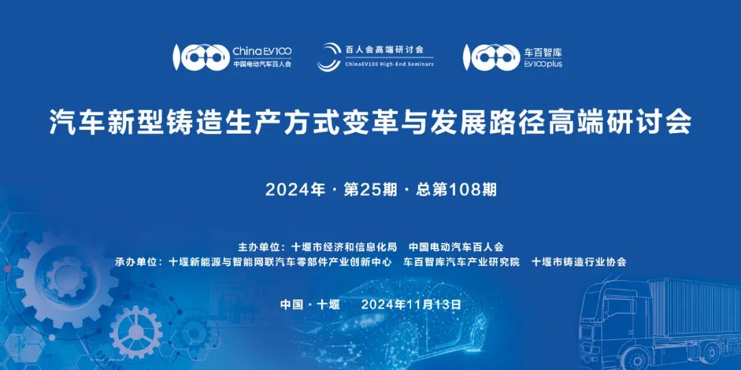 11月13日,由中国电动汽车百人会主办,十堰新能源与智能网联汽车零部件产业创新中心、车百智库汽车产业研究院、十堰市铸造行业协会承办的“汽车新型铸造生产方式变革与发展路径高端研讨会”在湖北省十堰市召开?;嵋橐云敌滦椭旆绞轿腥氲?,聚焦如何推动新技术、新工艺和新材料在汽车生产环节的创新应用,如何建立配套的新型整零企业协同发展关系等问题展开交流研讨?;嵋橛芍泄缍蛋偃嘶岣泵厥槌なɑ鞒?,中国电动汽车百人会副理事长兼秘书长张永伟和十堰市委常委、副市长高红民作致辞发言。