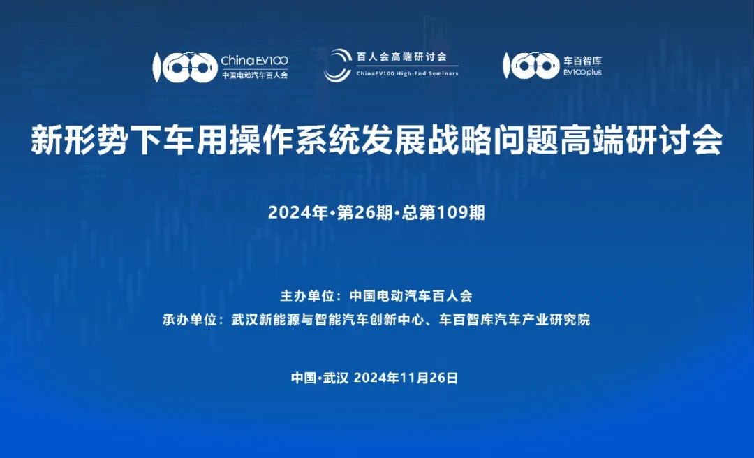 基于此,中国电动汽车百人会将于11月26日下午在武汉经开区举办“新形势下车用操作系统发展战略问题高端研讨会”?;嵋榻晌浜盒履茉从胫悄芷荡葱轮行?、车百智库汽车产业研究院联合承办,定向邀请汽车整车、解决方案商以及操作系统企业代表,围绕以下议题展开讨论: