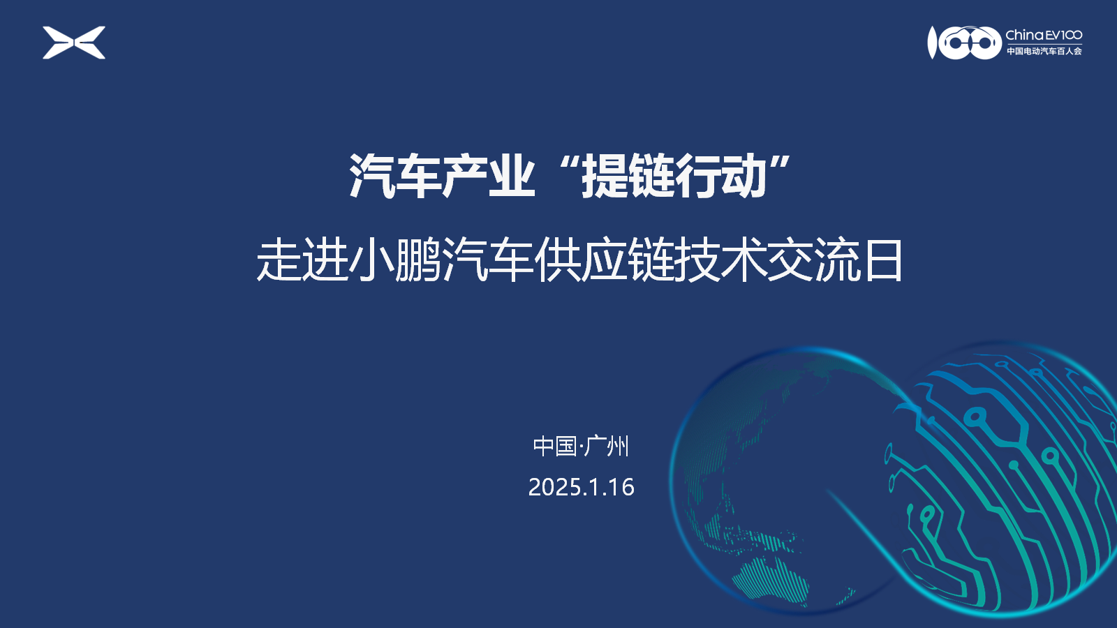 为促进汽车供应链上下游资源的高效合作,推动新产品、新技术商业化应用,服务于企业战略布局和行业协同发展,助力构建安全可靠的供应链体系,由中国电动汽车百人会携手小鹏汽车联合发起,并由中国电动汽车百人会汽车产业供应链协同创新中心(简称S100)承办的汽车产业“提链行动”之走进小鹏汽车供应链技术交流日活动将于2025年1月16日在广州举办。