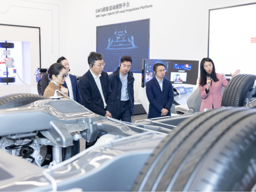 张永伟副理事长一行依序参观比亚迪集团展厅、技术博览馆,着重了解比亚迪自主研发的一系列核心技术与产品成果。其中,刀片电池以其卓越的性能表现,彰显了在电池技术领域的创新优势;DM-i 超级混动技术平台融合高效节能与强劲动力,展现卓越的混动技术实力;CTB 电池车身一体化技术则进一步推动了汽车结构与电池技术的深度融合,优化整车性能。此外,璇玑智能座舱系统以及云辇智能车身控制系统等也尽显比亚迪在智能化与底盘控制技术方面的前沿探索与创新成果,同时,比亚迪电子相关展示呈现出其在多元科技领域的广泛布局与深厚技术沉淀。在技术展示之余,张永伟副理事长亲自体验比亚迪新能源全车系,包括最新的仰望系列 U9、U8 等旗舰车型以及丰富多样的新能源车型产品矩阵,深度体验比亚迪在新能源汽车领域的全方位研发实力与产品魅力。