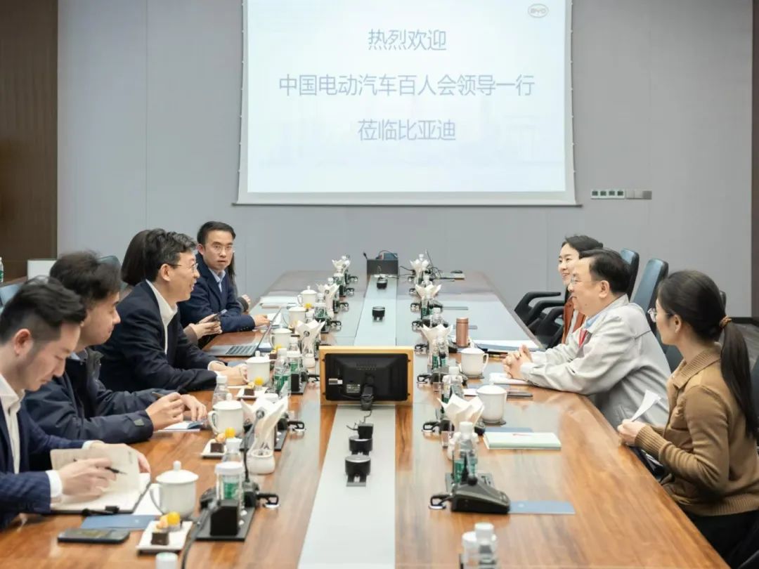 12月18日,中国电动汽车百人会副理事长兼秘书长、首席专家张永伟率队前往比亚迪参访交流。比亚迪集团董事长兼总裁王传福,比亚迪集团副总裁、总裁办公室主任李巍等领导热情接待。