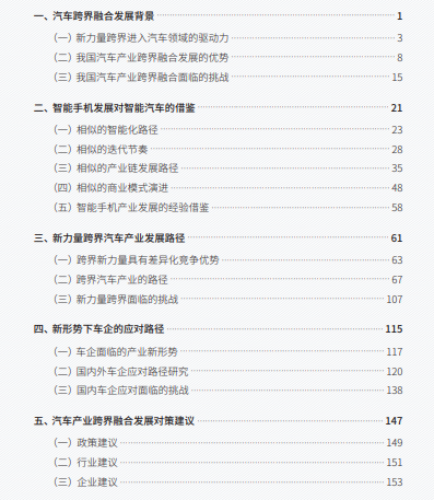 研报《跨界融合与汽车产业新力量》的目录 图源:车百智库