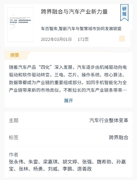 《跨界融合与汽车产业新力量》研报详情页 图源车百智库小程序