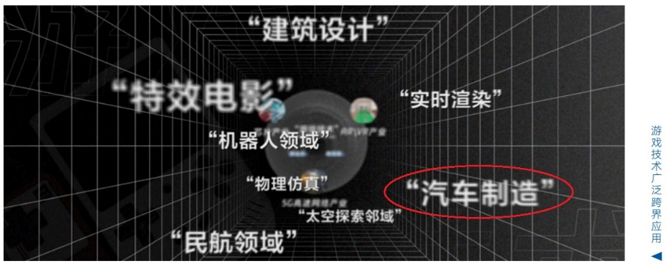 游戏技术的跨界应用,就包括“汽车制造”等汽车产业链相关领域 图源:《游戏技术——数实融合进程中的技术新集群》报告