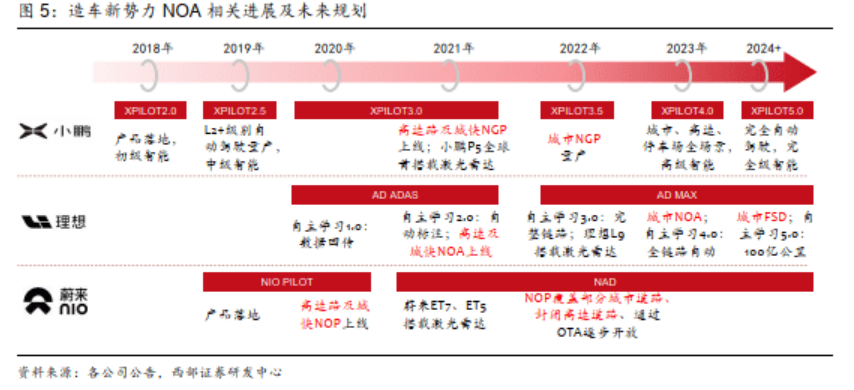 在内卷的我国新能源汽车市场上,当第一批试水者已经行动,任何车企都不再敢冒“人有我无”的风险,必须跟随投入。因此,蔚来、小鹏、理想汽车都着手自己车型上推出NOA功能。不过,各车企对NOA的叫法不尽相同。小鹏称之为NGP,理想称其为NOA,甚至还有NAD、NOH、NCA等多种叫法。