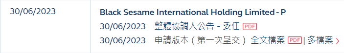 黑芝麻智能(Black Sesame International Holding Limited - P)向港交所提交的上市申请书 截图于披露易