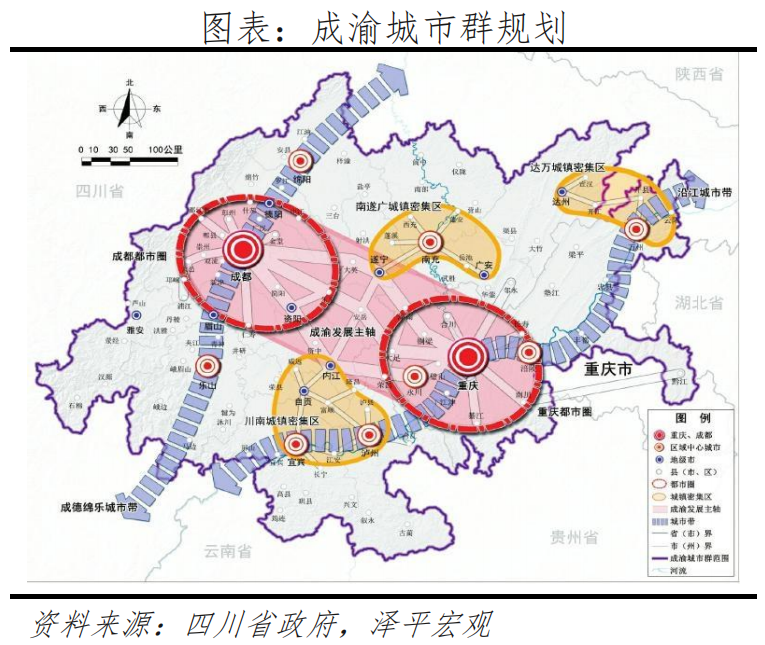 成渝城市群规划,图自:四川省政府,泽平宏观