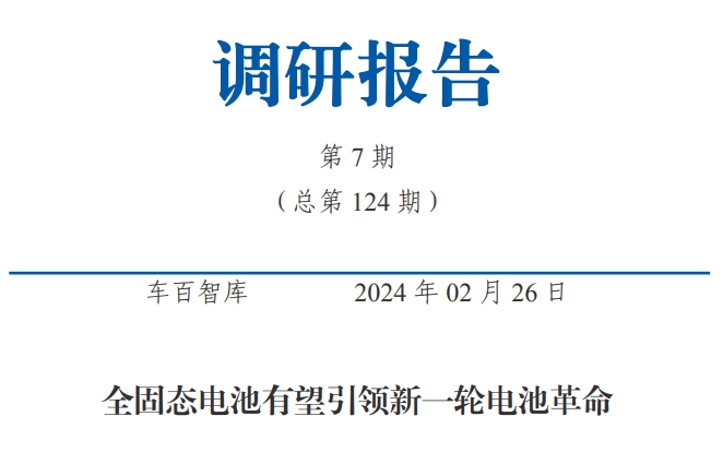 查阅《全固态电池有望引领新一轮电池革命》等相关研报,可登录车百在线官网(ev100online.com)