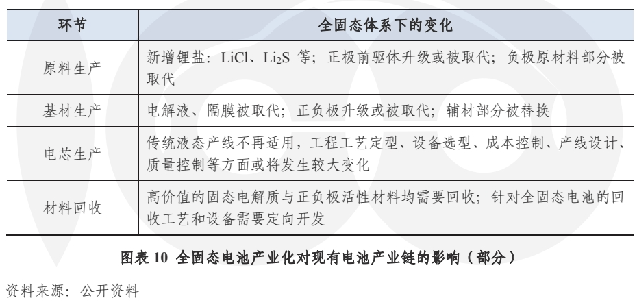 从供给角度看,我国已基本构建了完整的液态锂离子电池产业生态,涵盖从上游矿产资源、材料制造、电池生产、整车应用到回收利用等各个环节。液态锂离子电池主要供应链已实现自主可控。若发展固态电池,将对现有电池全生命周期产业链造成不小的冲击,从核心固态电解质原材料的供应,到与之适配的各种应用终端,均需行业形成新的共识。