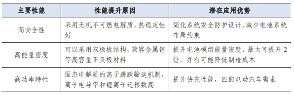 相较于液态锂离子电池,全固态电池具有如下优势: