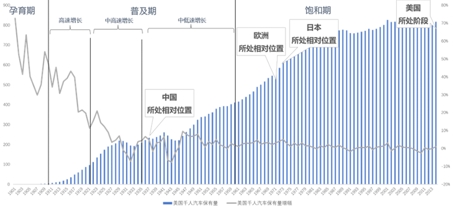 图 1 全球核心汽车市场所处发展阶段