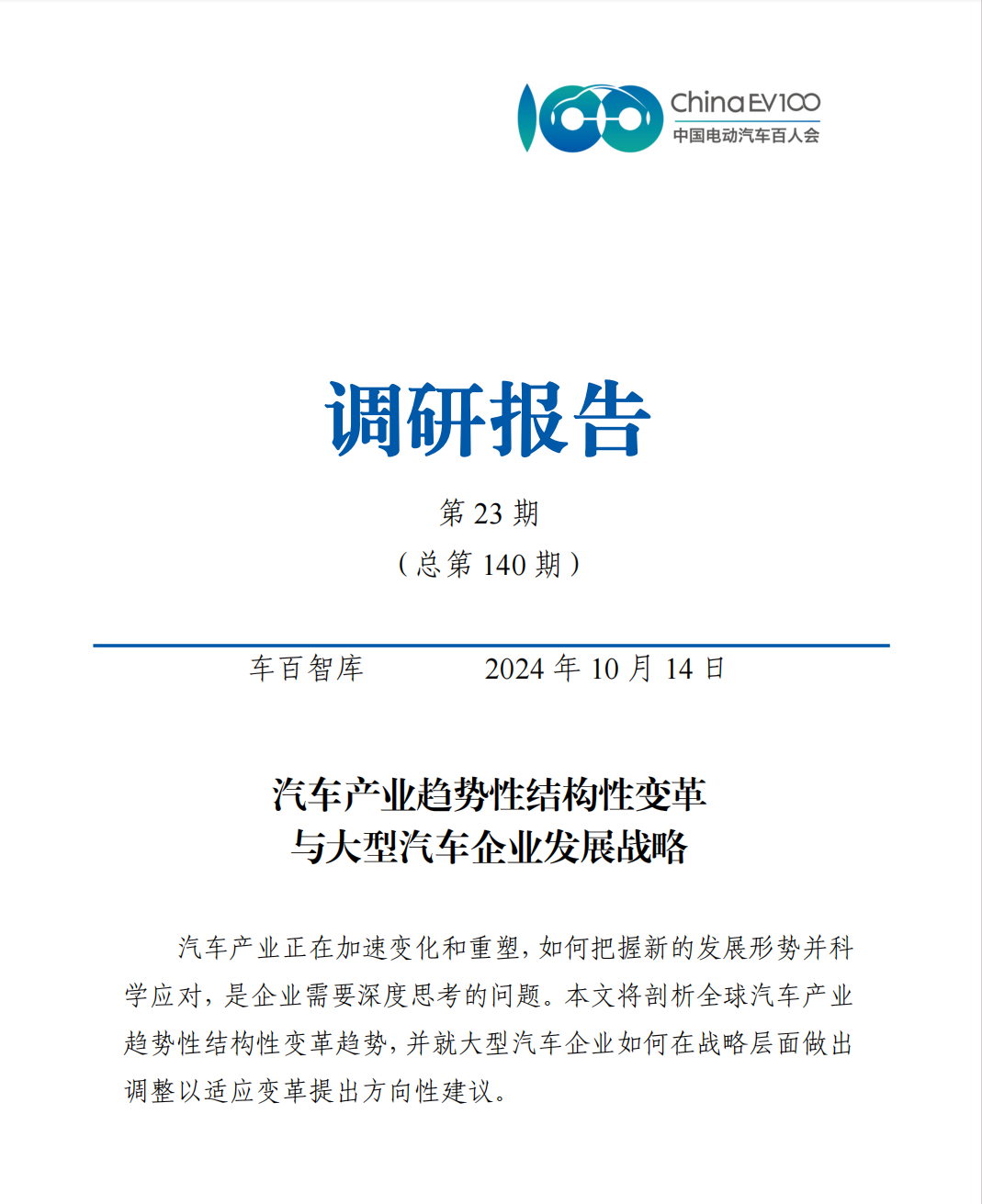 汽车产业正在加速变化和重塑,如何把握新的发展形势并科学应对,是企业需要深度思考的问题。日前,车百智库发布调研报告《汽车产业趋势性结构性变革与大型汽车企业发展战略》,详细剖析了全球汽车产业趋势性结构性变革趋势。
