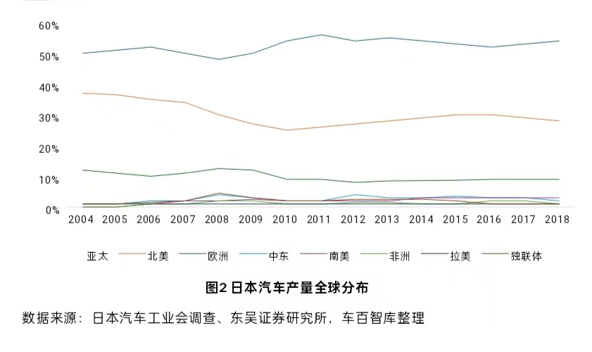 另一方面,日本汽车企业加快向欧洲、中国、东南亚和澳大利亚等市场渗透,通过本地建厂生产规避关税壁垒,强化供应链和产业链布局。至90年代末,日本在除中东和大洋洲外的全球主要市场完成生产基地布局,海外产量成为增长的主要驱动力。