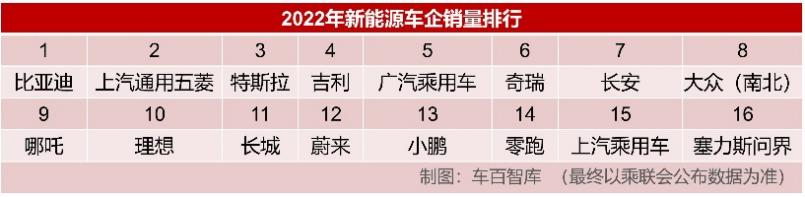 但是,将视角缩小到正在面临盈利大考的新能源车企,则会发现,2022年新能源汽车销量前16名中,约三分之一的车企没有自己的汽车金融公司,它们可能无法享受到征求意见稿带来的直接红利。不过,征求意见稿依然能在间接上促进这些新能源车企的销售。