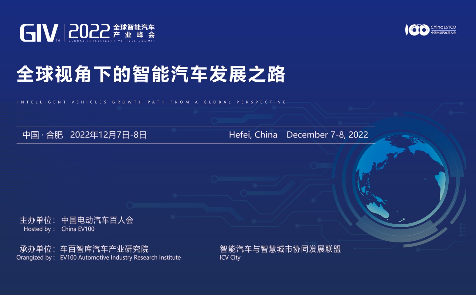 全球智能汽车产业峰会(GIV2022)将于12月7-8日在合肥召开