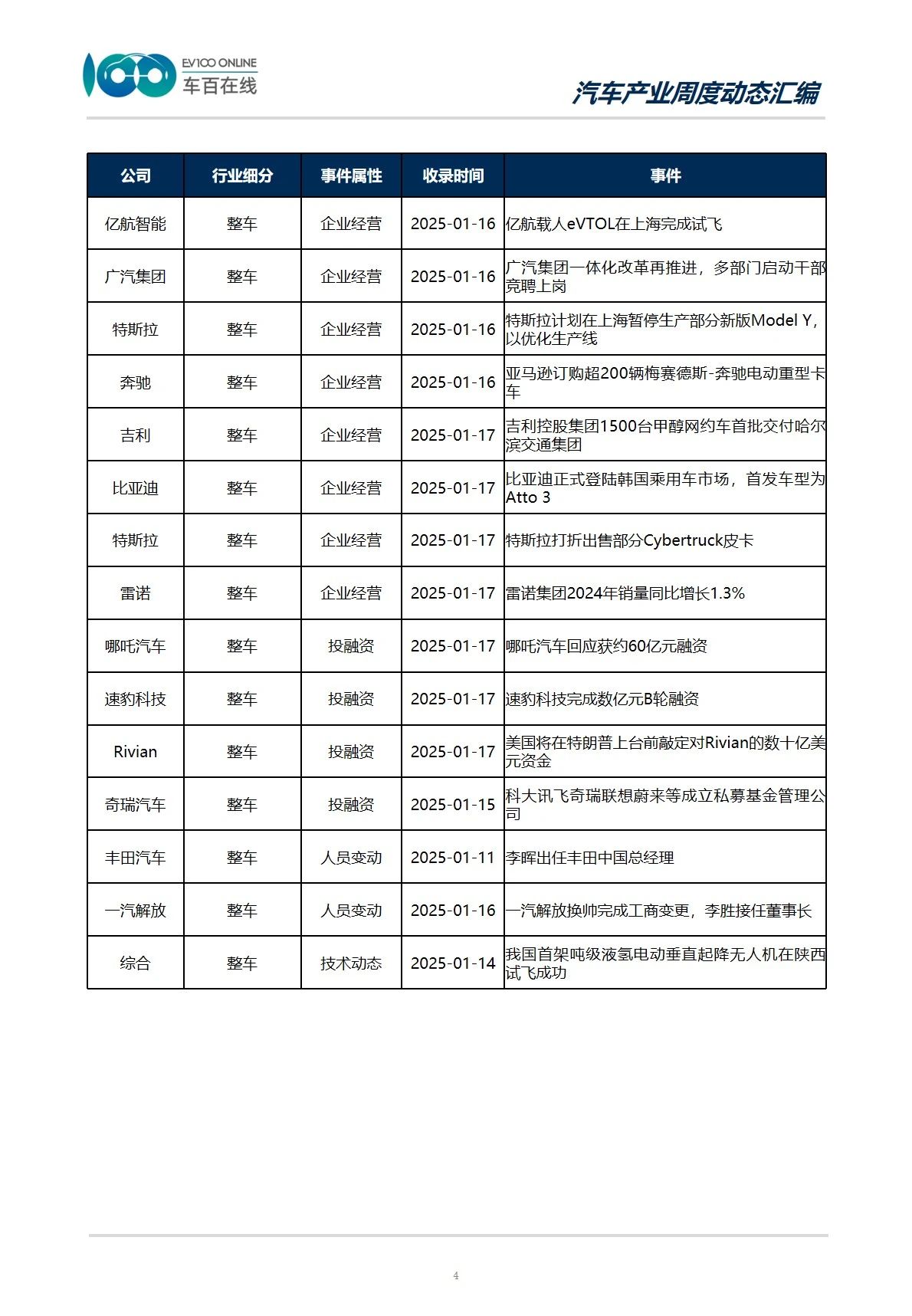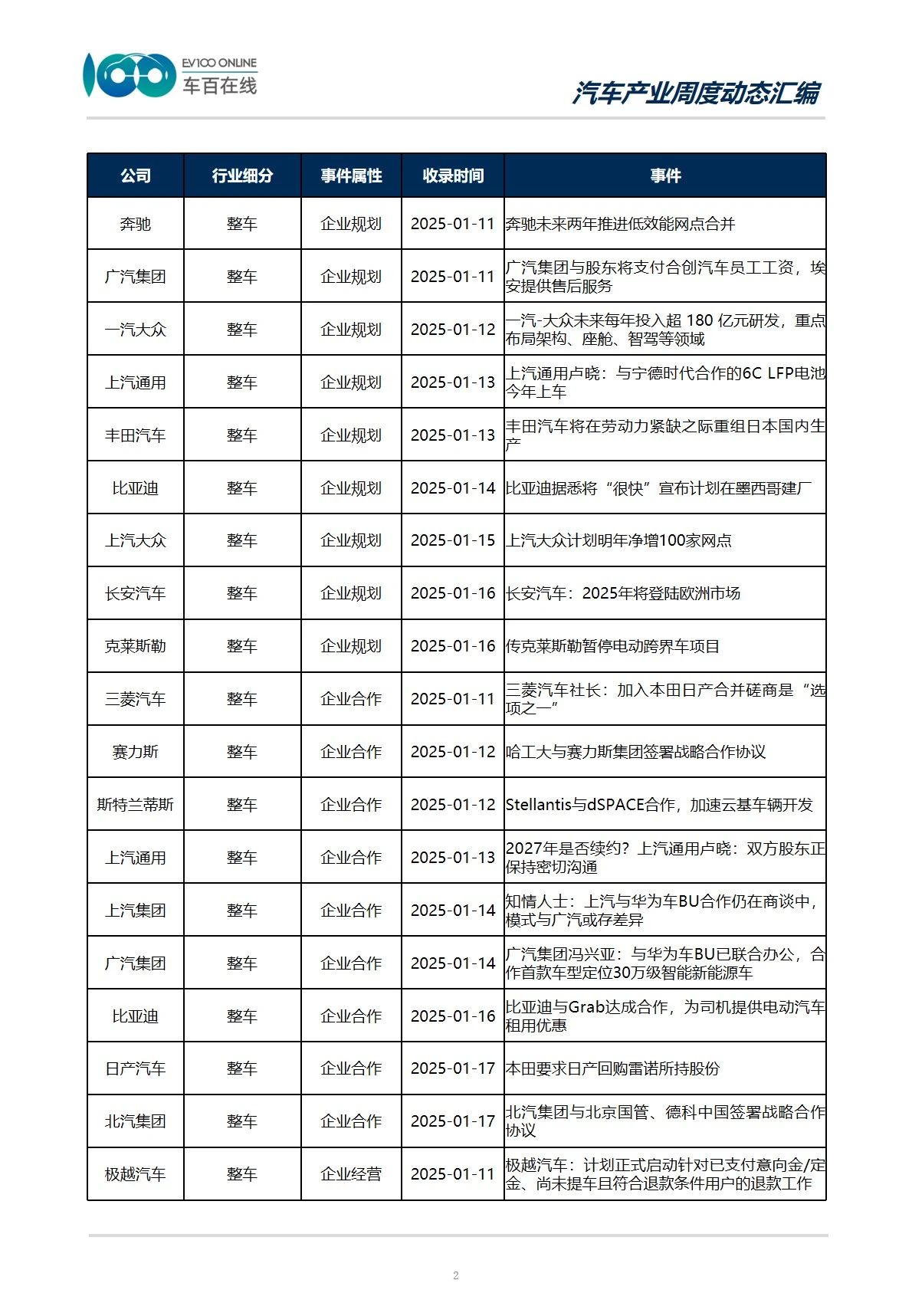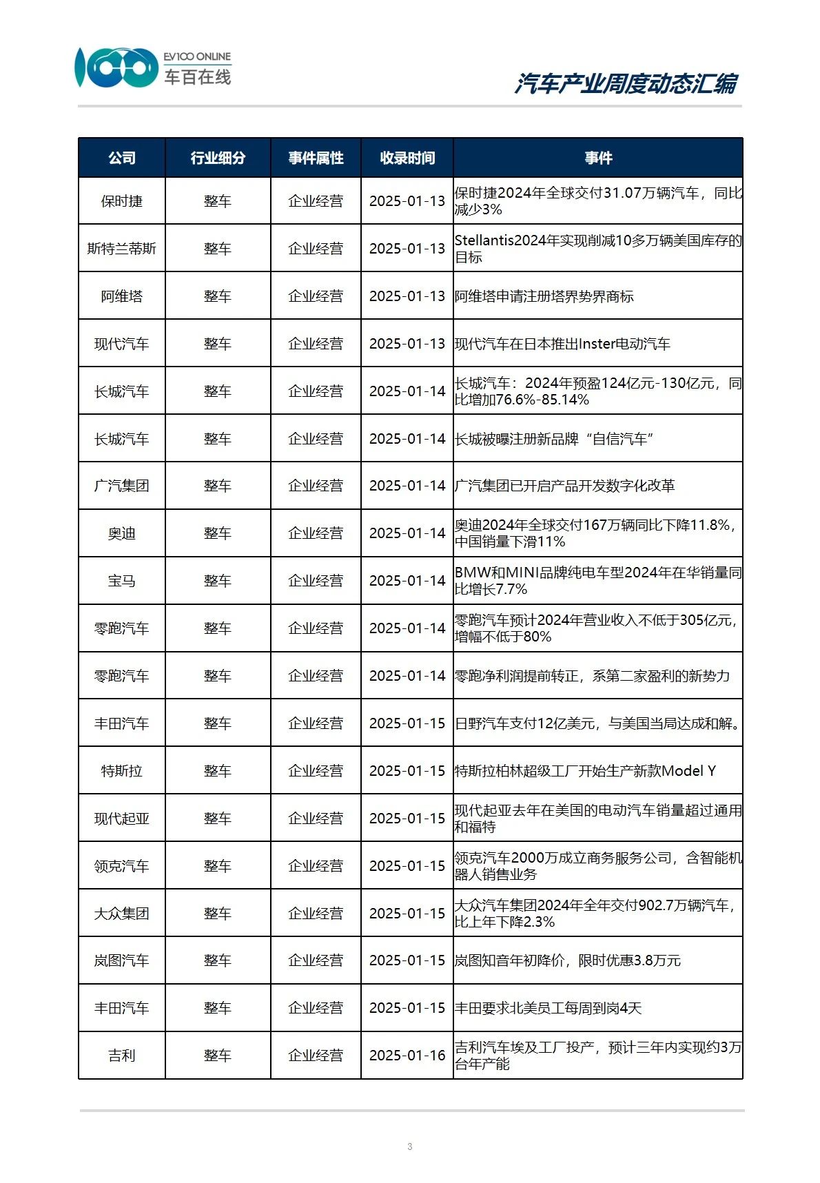 整车产业事件目录